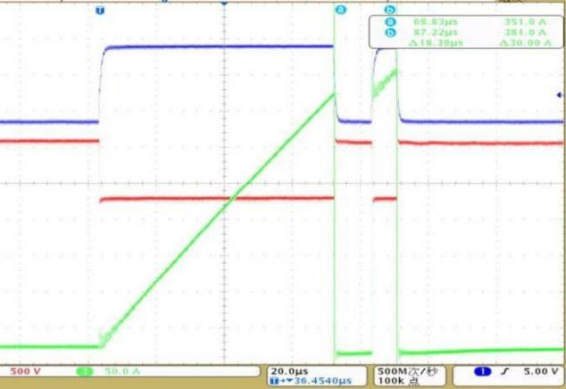 中国科学院电工研究所基于芯片产品SG2MA35120B完成了低杂感半桥模块封装,双脉冲测试波形如图6所示。中国科学院电工研究所研究员宁圃奇表示: “在中科院交叉团队项目和国家重点研发计划新能源汽车专项项目的支持下,该单颗芯片在环境温度为150°C且母线电压为800V时实现了350A的电流输出能力。本芯片特别适用于大功率车用电驱系统,可有效抑制并联大数量小电流芯片带来的不均流、不均温难题”。