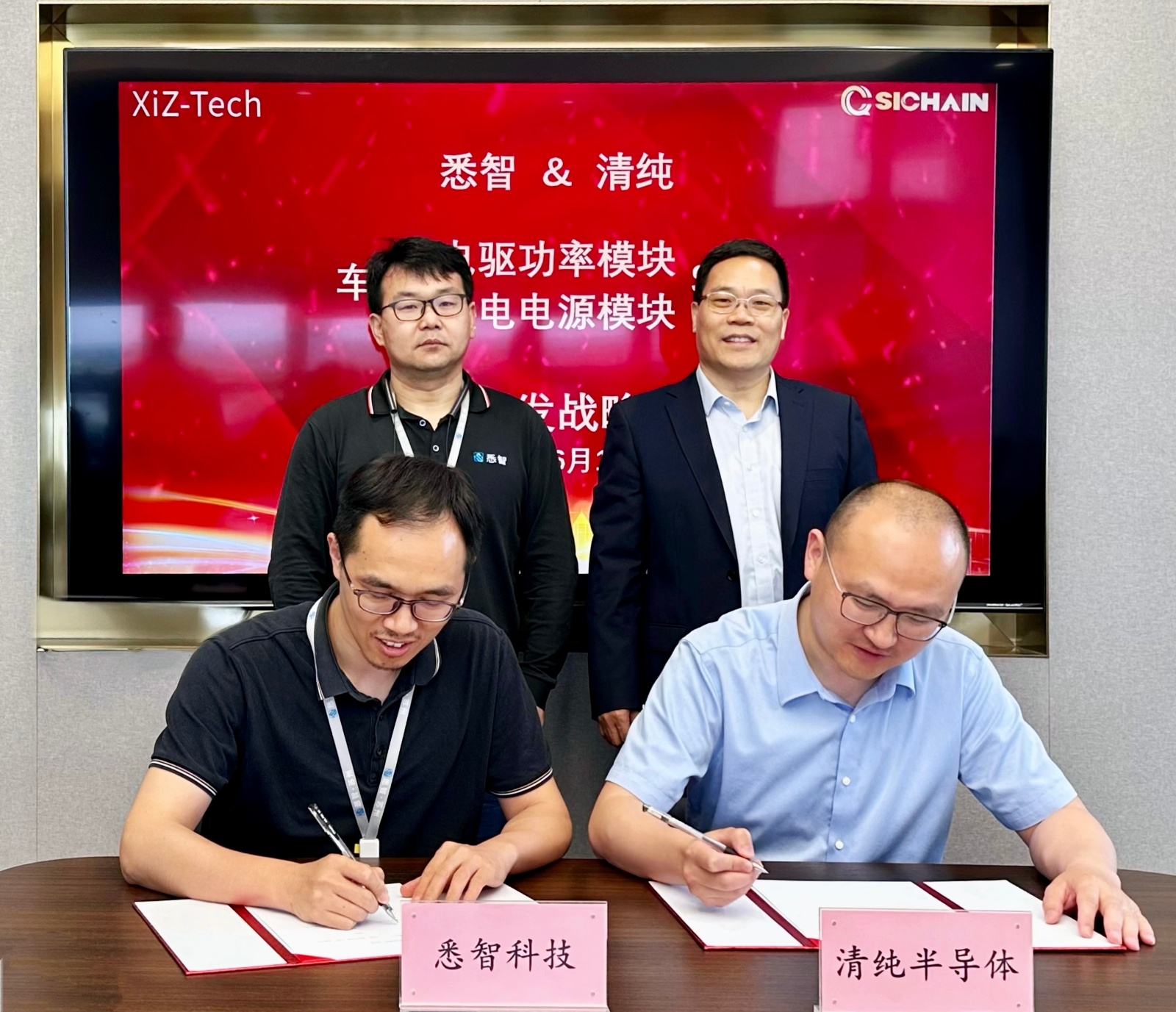 日前,清纯半导体(宁波)有限公司与苏州悉智科技有限公司在清纯半导体宁波总部签订车载电驱功率模块&供电电源模块用SiC芯片定制开发战略合作协议。