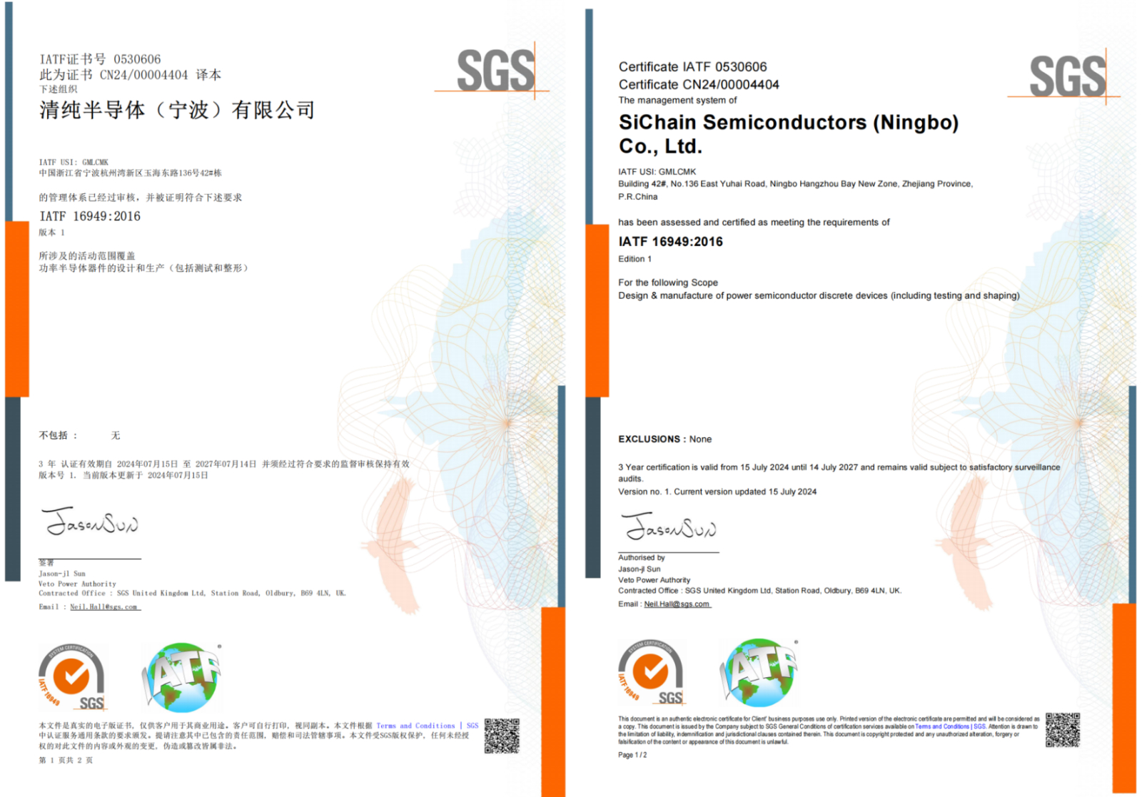 近日,公司通过权威认证机构SGS的严格审核,正式获得IATF16949汽车质量管理体系认证。这标志着清纯半导体的质量管理体系全面符合国际汽车行业质量管理标准,为公司今后持续、稳定量产高品质的车规级产品,提供了坚实保障,为公司更好的服务汽车客户提供了强有力的保证。