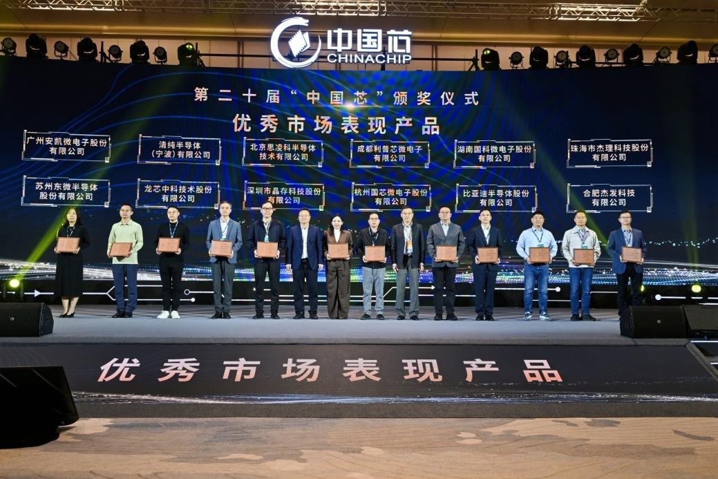 11月14日,2025年“中国芯”集成电路产业促进大会暨第二十届“中国芯”优秀产品征集结果发布仪式在珠海召开。经过层层筛选角逐,清纯半导体1200V 40毫欧SiC MOSFET产品荣获第二十届“中国芯”优秀市场表现产品奖。